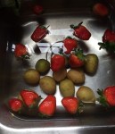 One of my fav uses for vinegar is cleaning produce. It’s super quick & easy! All you have to do is fill your kitchen sink with water, add a little vinegar (I don’t measure, just pour a little,) and let your produce soak for a little. I usually do about 10 minutes. Just do a quick rinse when you’re done soaking, and that’s it. It works great!