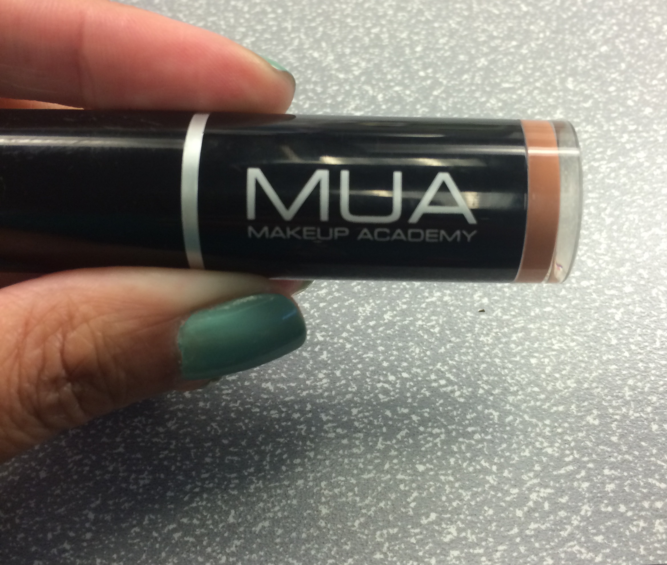 It is a nude color in a matte finish when you apply it, but it didn’t alter the color of the lipstick or gloss at all, which is what my concern was.