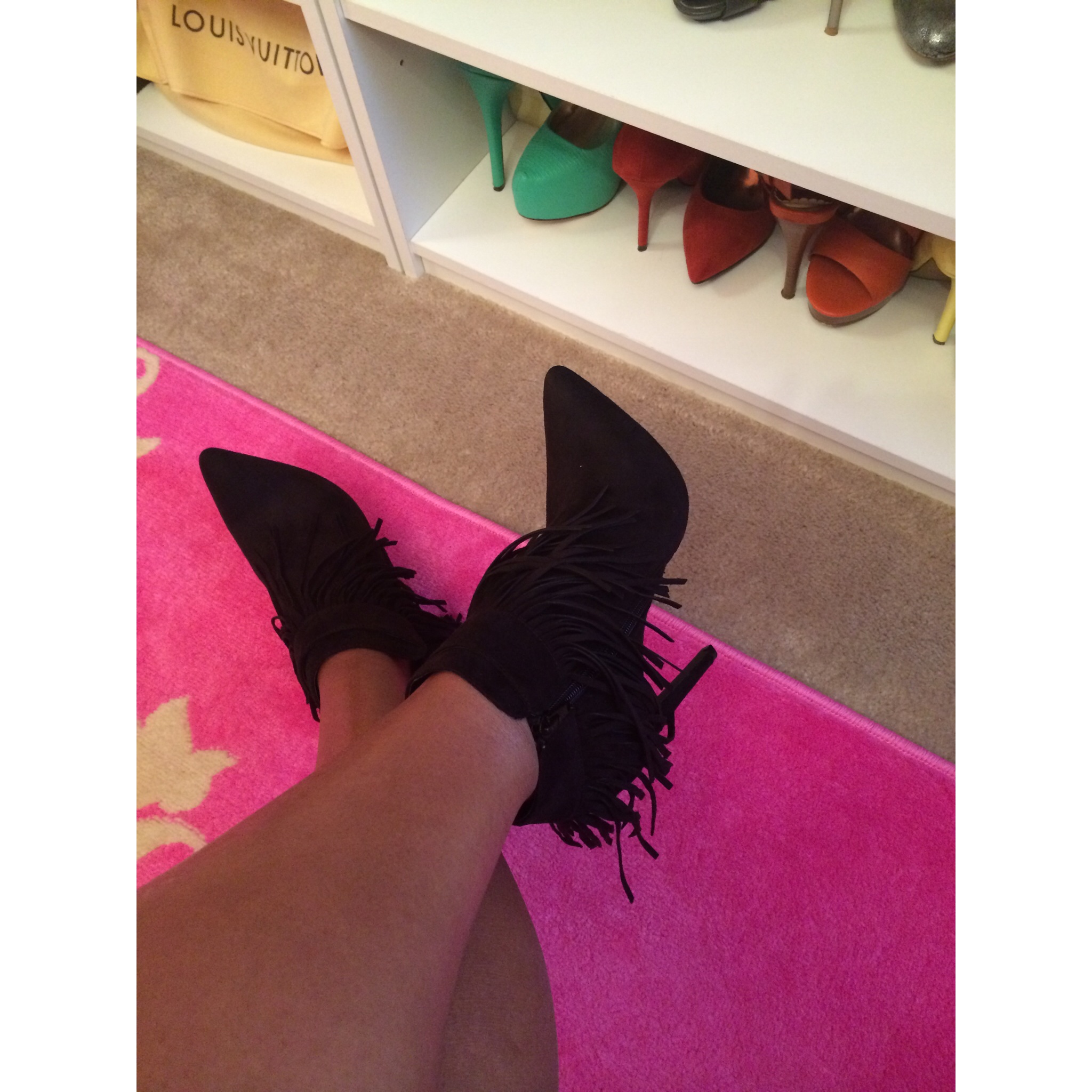 Weeks ago I ordered a pair of black fringe booties from hautelook.com, they finally arrived last Friday and I absolutely love them! I so can’t wait for fall so that I can rock them with just about everything! They’ll look awesome with jeans, skirts, dresses…seriously everything!