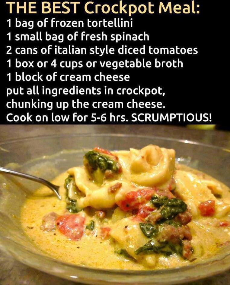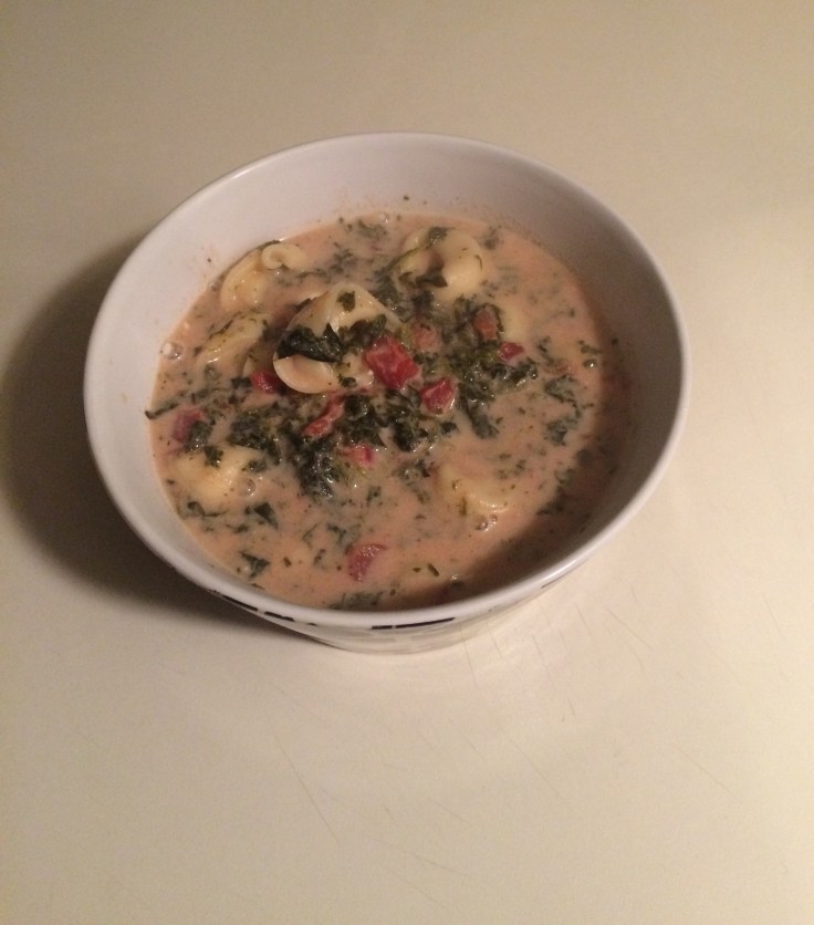 I put all ingredients in a large pot on medium heat until the cream cheese melted and then added the tortellini for the last five minutes or so since it doesn’t take much time to cook.