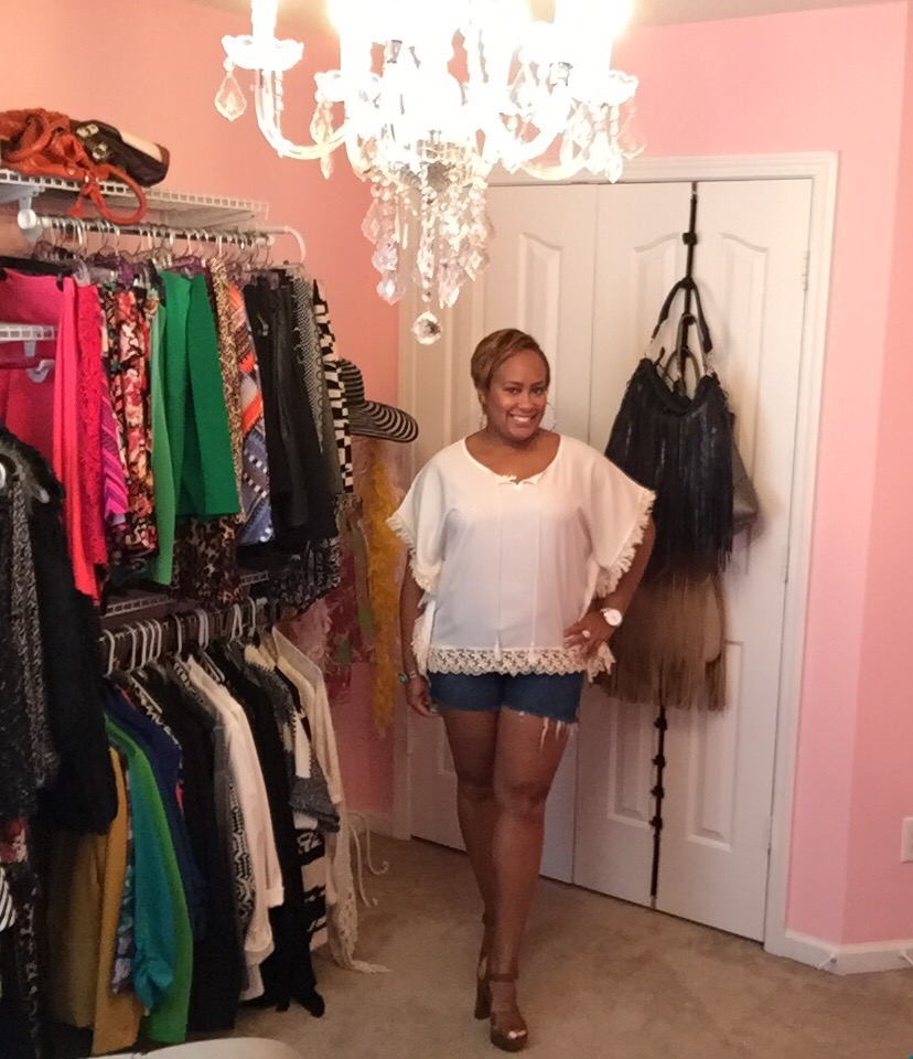 My outfit today cost me about $20. I live for a good deal! The shirt I bought for about $12 during the Dillard’s New Year’s Day sale and the shorts were DIY denim cut offs I made myself. I bought the jeans for $6 at Goodwill.