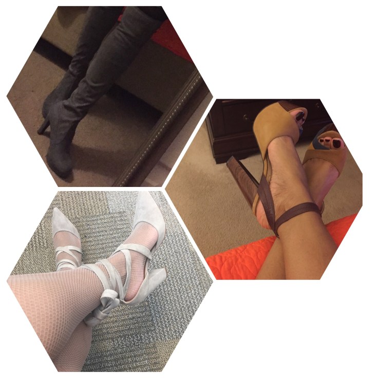 What could cure my blues…at least temporarily? Shoe shopping! Or any kind of shopping for that matter. It goes without saying, I LOVE shoes! The higher the heel, the better. They really do make your legs look amazeballs. So, a couple weeks ago, I was on the Belk website and decided to look at the shoes. It was my lucky day, because there was also an extra 40% off! I found two pair, for about $50. Then, a few days later while at the mall with a friend, I found another pair that I hadn’t seen online. If you’re not a regular Belk shopper, they often have an additional amount off clearance, and there’s almost always a coupon! So, here’s what I found.