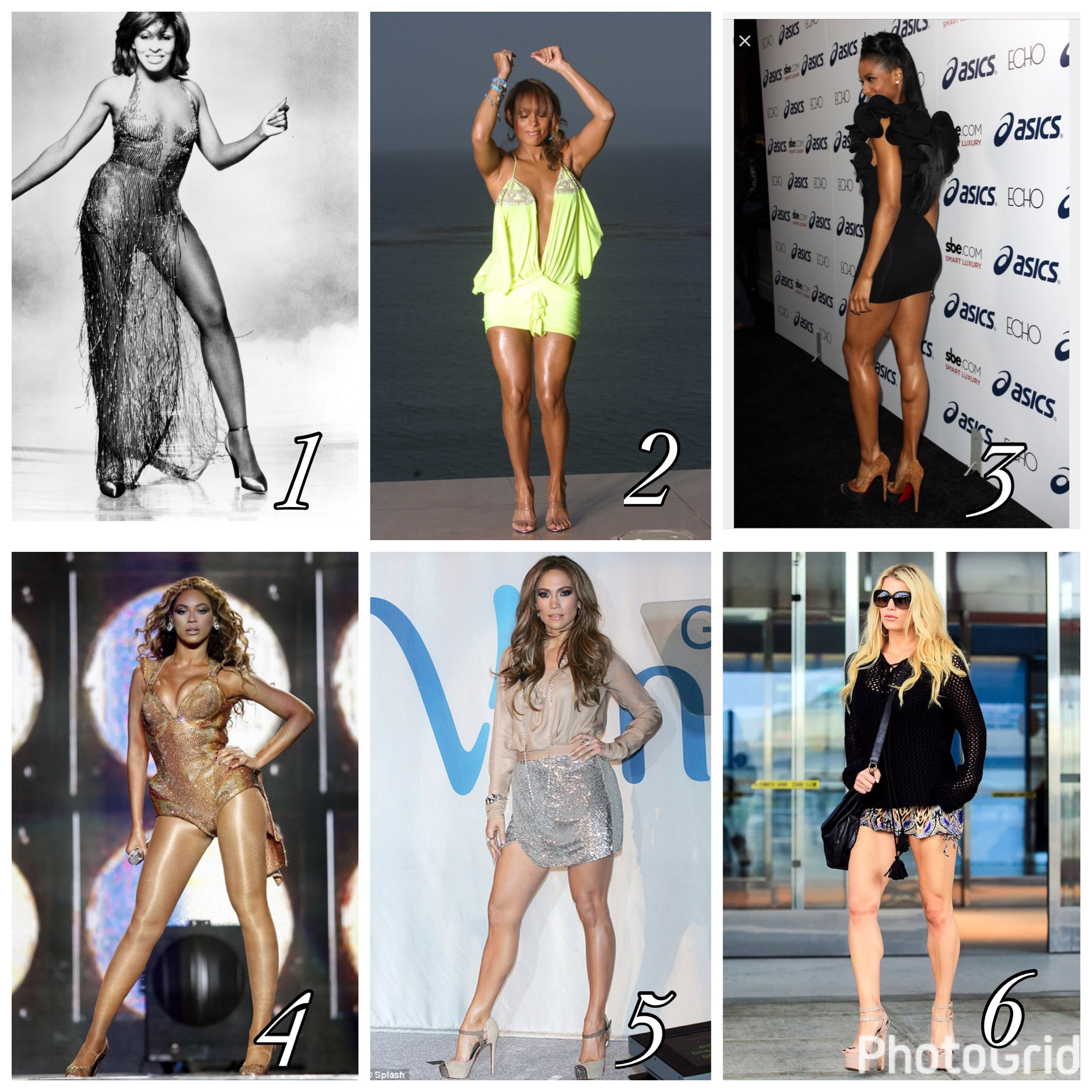 In order: Tina Turner, Tamia, Ciara, Beyoncé, J Lo, and Jessica Simpson. Yesterday I caught a little heat when I said that Jess may just edge out Ms. Tina for best legs. No one will ever top Tina, but c’mon, she does have some hefty competition these days! And nobody rocks daisy dukes quite like Jess.