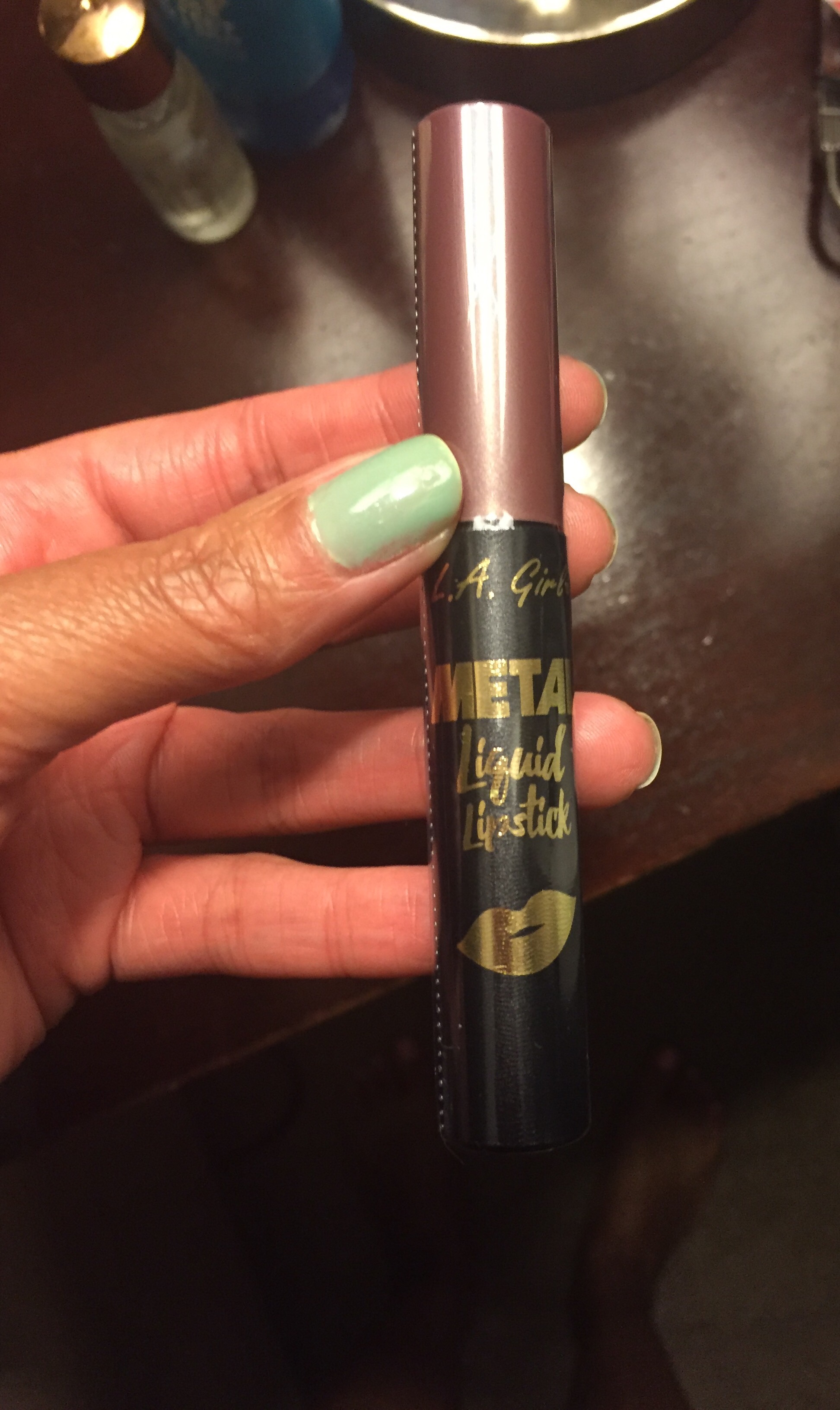 Hey y’all! Hope everyone is having an amazeballs week. I’m happy that my week is better than last, and back to normal. Anywho, I was in Ulta over the weekend because I needed new sponges, but of course I had to look around! A friend and I had been talking about metallic lippies. I wasn’t sure how I felt about them, and I definitely didn’t want to spend much, so I was thrilled when I spotted the LA Girl display. I can’t remember all of the colors, but I remember they were mostly golds and bronzes. This is the one I went with. It’s called galvanize.